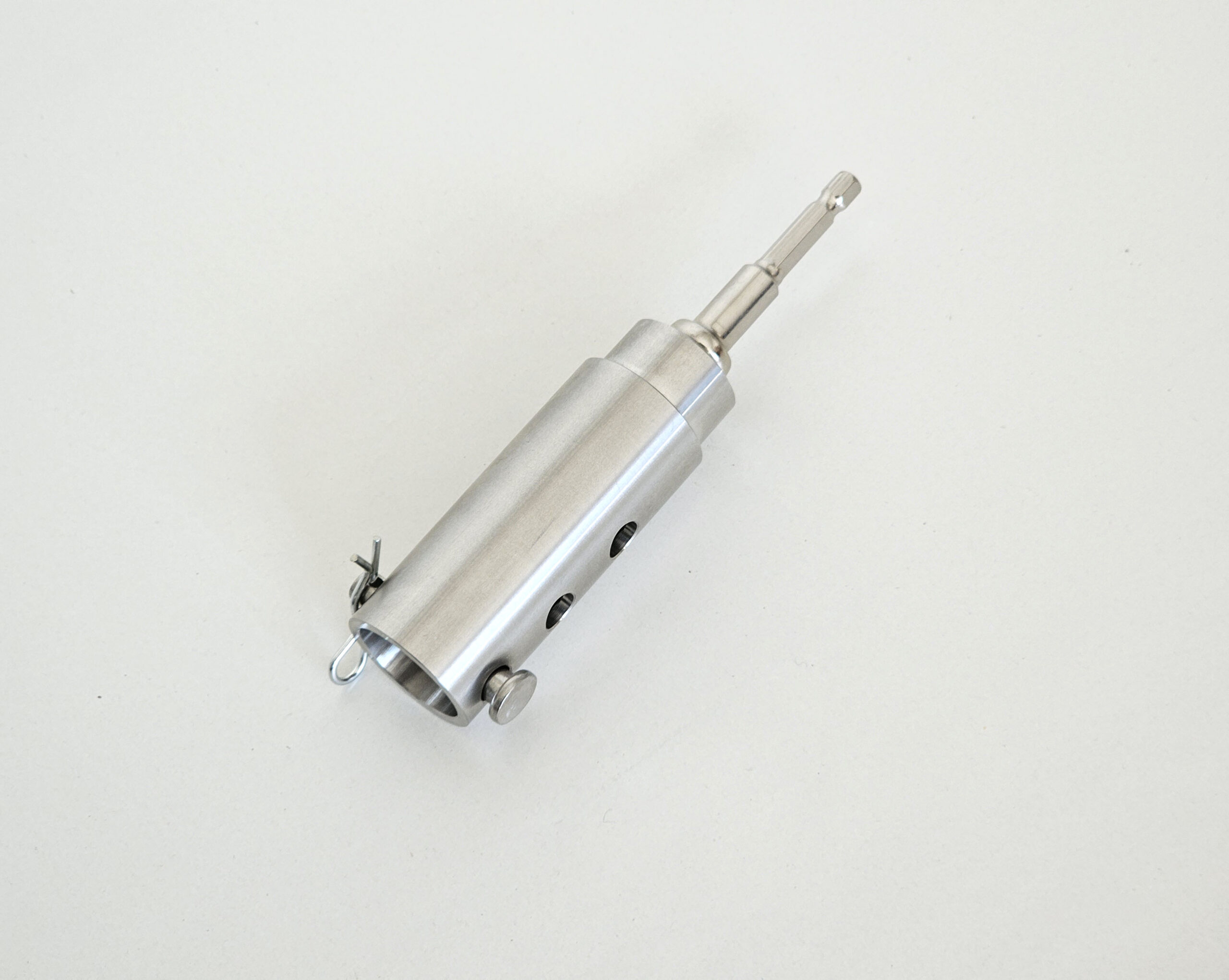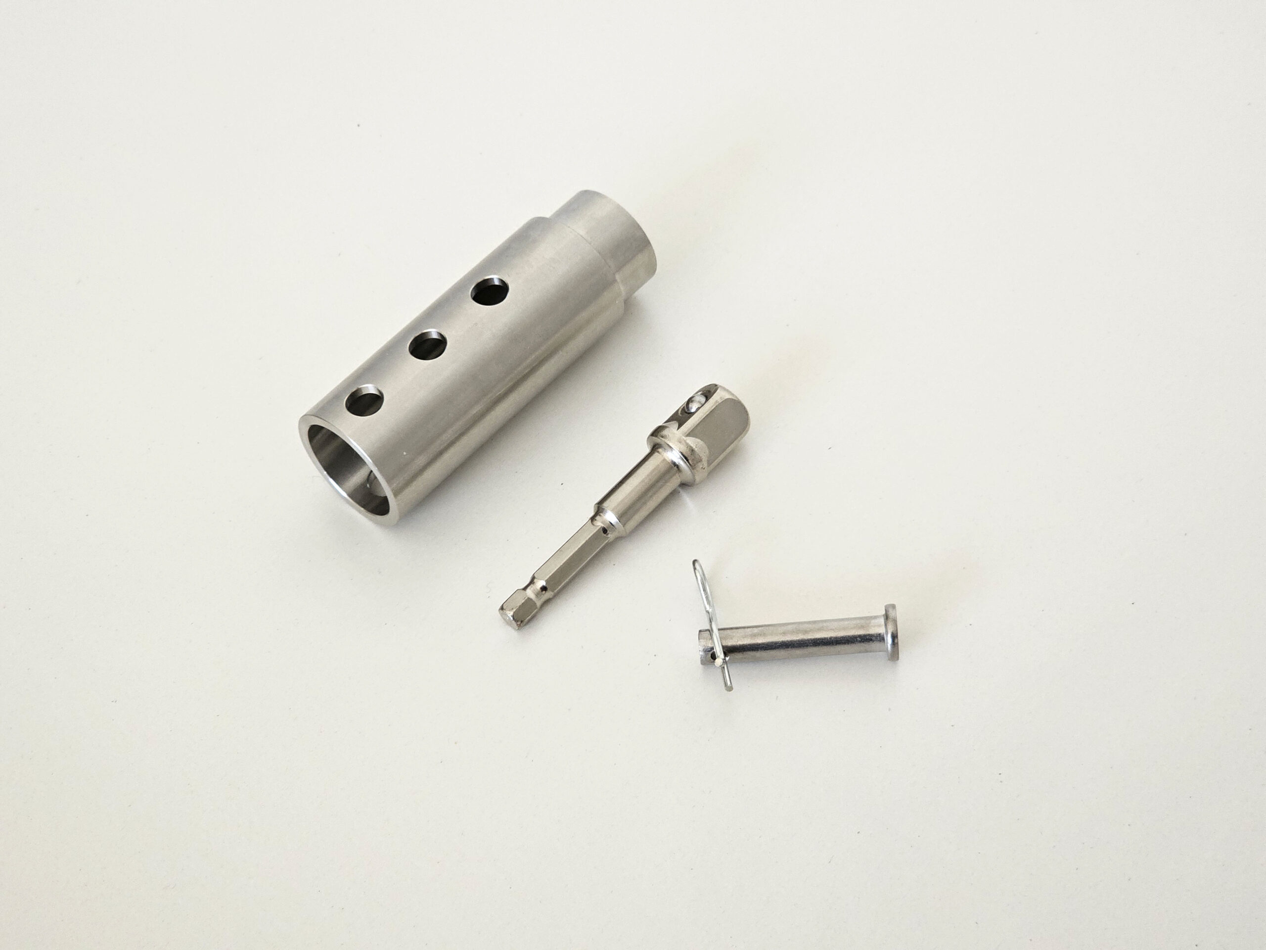 - Easy Installation: Simply remove the existing handle, slide the jack adapter, onto the trailer handle rod, and secure it with the included pin